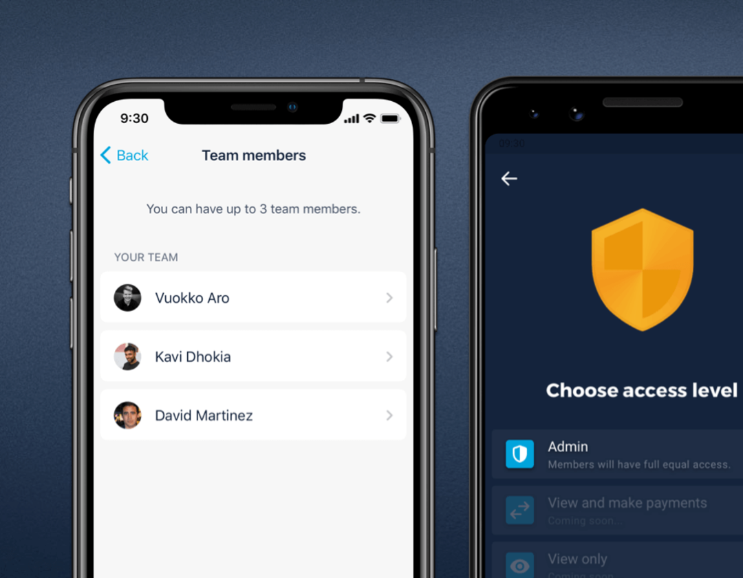 Right now, everyone you add to the account will have full, equal access. But we're working on more levels of permission, like read-only access and payment approvals.